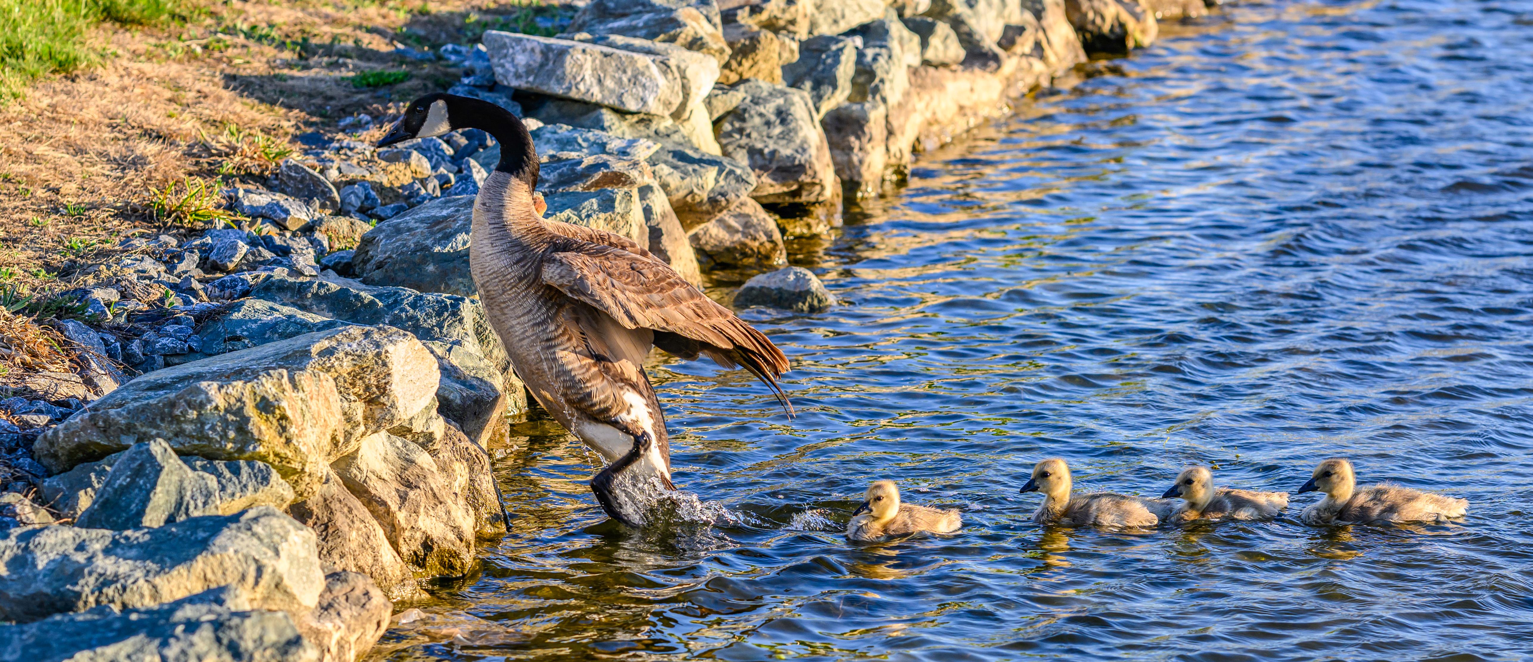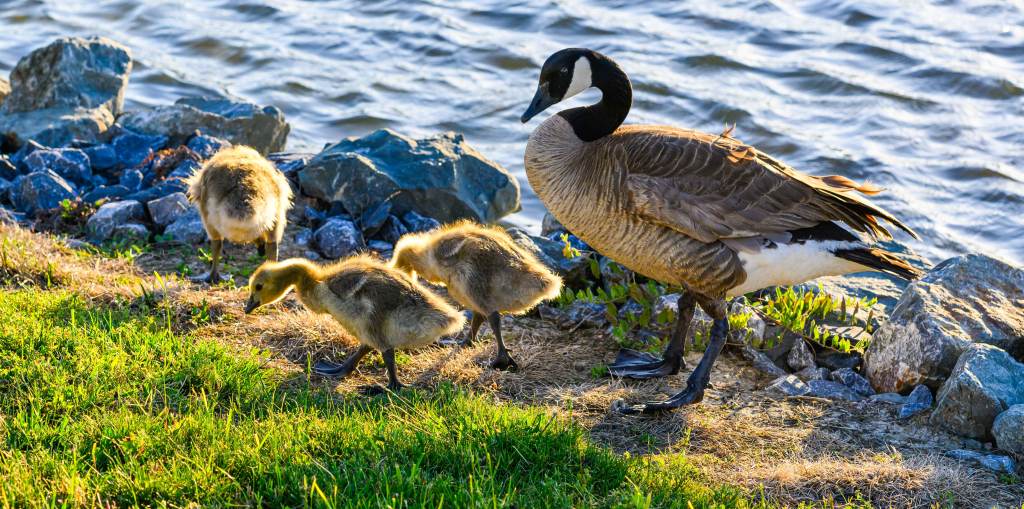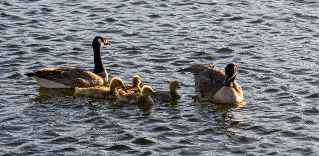 During my daily walk around the lake our community surrounds, I saw the first geese I have seen at the lake. The adults had positioned themselves between the newborns, who were resting near the water’s edge and the walking path. I didn’t have my camera and I didn’t want to take a cell phone shot. So I kept walking. Two days later, to my surprise, they were still there. But again, no camera. However, this time, I returned with my camera.